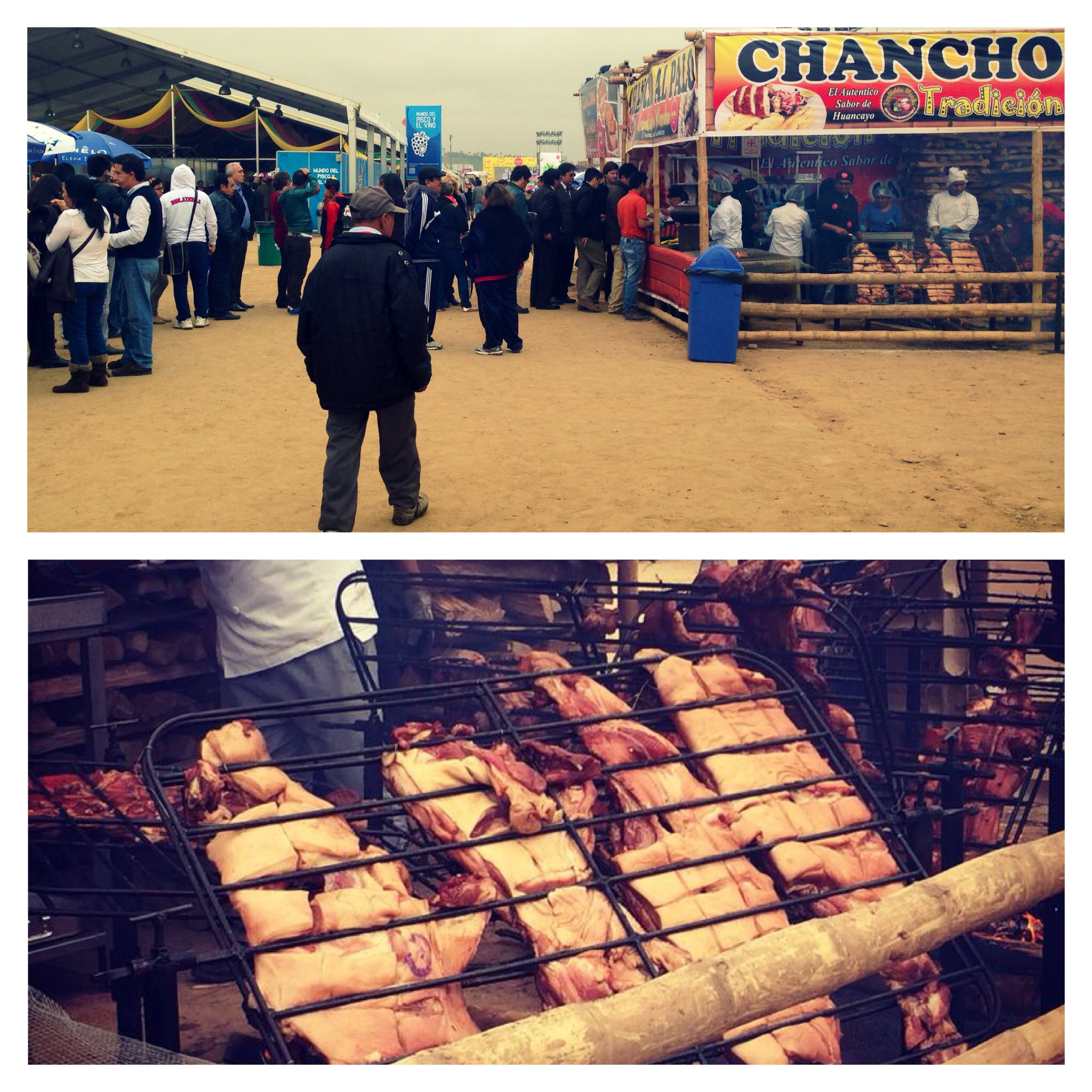 Y mientras miraba los chanchis y sentía como la ropa se me impregnaba de olor a leña, me di cuenta de que por fin comería chancho al palo en Mistura. Tantos años de ir y no comer..mis ojos empezaron a lagrimear y miré a Kimy, que también lagrimeaba y en ese preciso momento..empezamos a toser y a toser..olas de humo de todas las parrillas nos envolvían, y nos hacían arder los ojos. Tamare x3